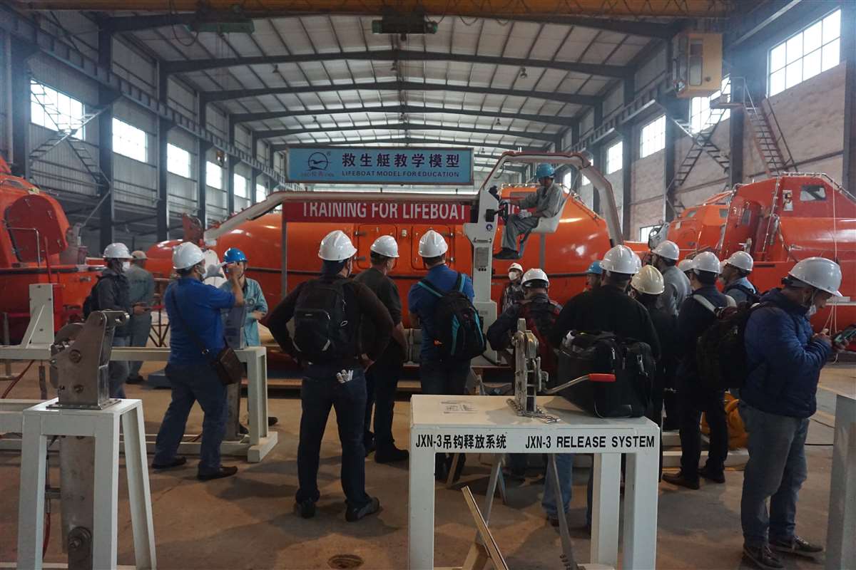 17名船舶服务精英人员来到华球平台船舶设备有限公司,对厂家设备的新设计,新产品进行深层次的学习和服务训练,成为佼燕救生设备的优秀服务商,为佼燕的客户提供更优质,更专业,更及时的服务.
