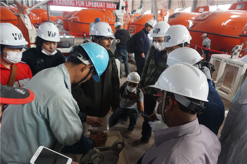 船舶服务精英人员来到华球平台船舶设备有限公司,对厂家设备的新设计,新产品进行深层次的学习和服务训练,成为佼燕救生设备的优秀服务商,为佼燕的客户提供更优质,更专业,更及时的服务.