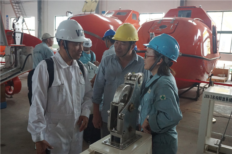 船舶服务精英人员来到华球平台船舶设备有限公司,对厂家设备的新设计,新产品进行深层次的学习和服务训练,成为佼燕救生设备的优秀服务商,为佼燕的客户提供更优质,更专业,更及时的服务.